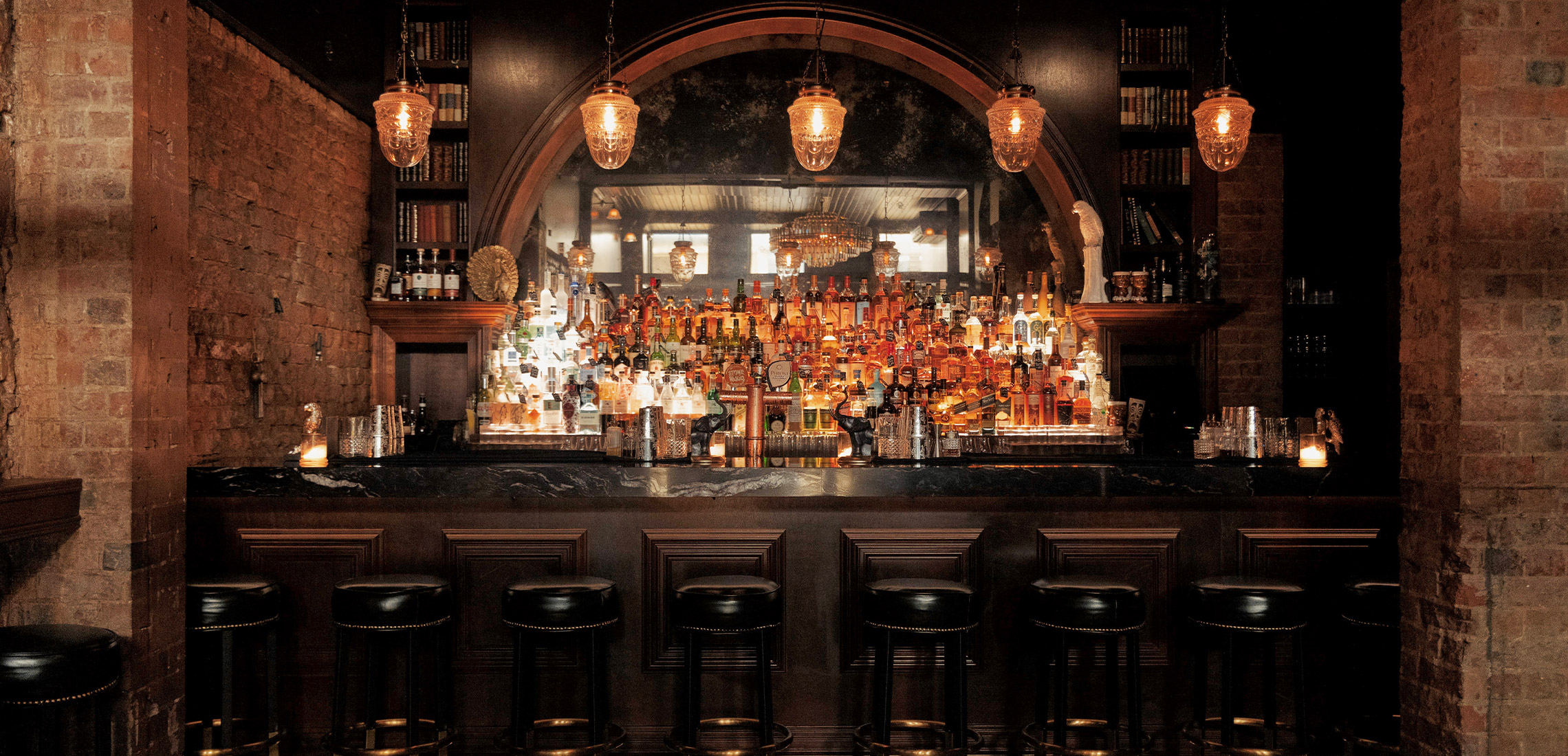 The 50-seater split-level space welcomes you in with an elegantly lit, arched wooden back bar, reminiscent of an Italian hotel lobby bar. Each curated design detail fits perfectly within Brisbane’s oldest laneway, from the hand-crafted black and white mosaic, to the marble bar top, gold chandelier, sunken seating area, and softly lit candles sending shadows dancing on the original building’s brick walls.