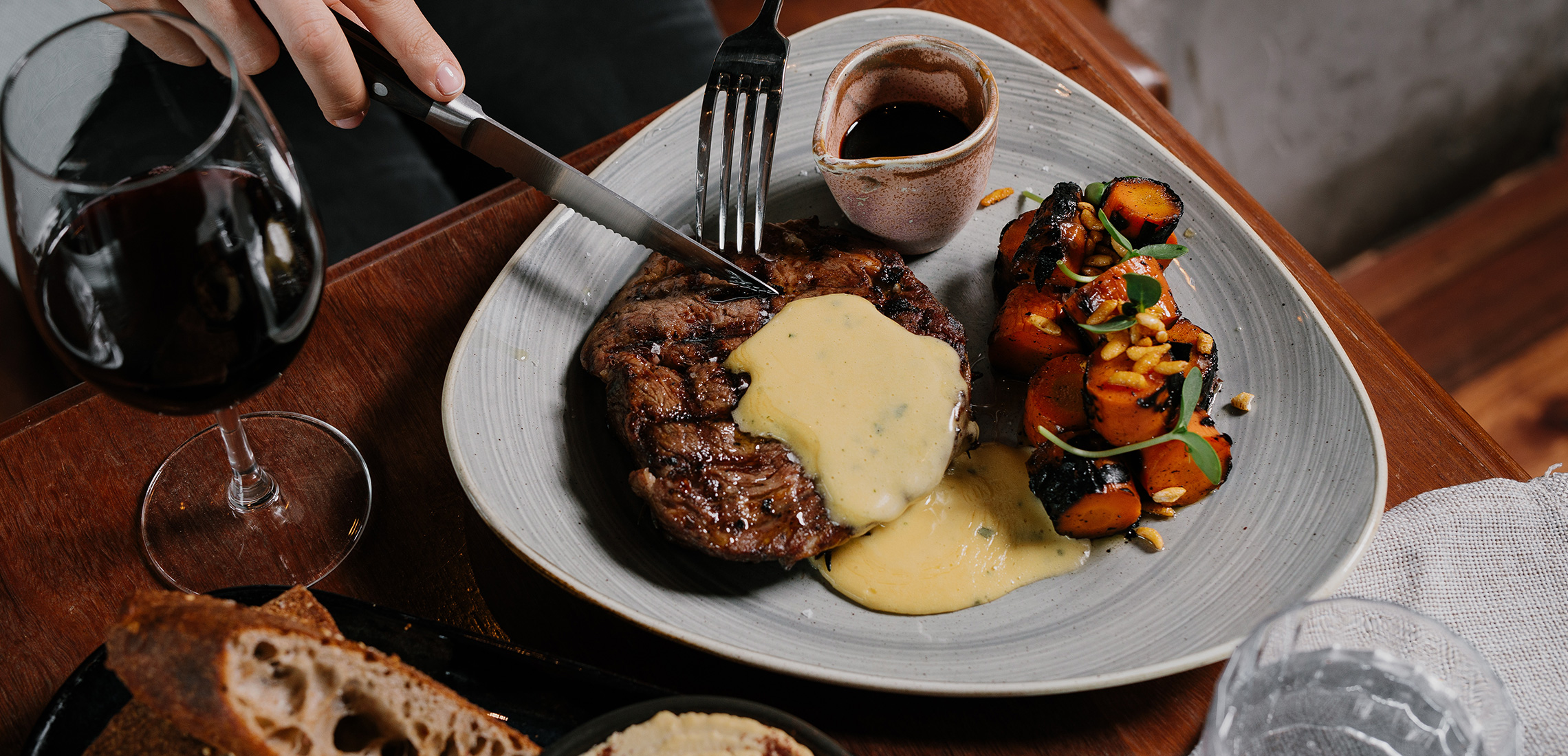 With Venezuelan-born head chef, German Gonzalez, at the helm, the exquisite menu hosts dishes wood roasted, smoked, grilled, or finished over the ironbark coals to perfection. Drifting from the ocean to the paddock, the custom-made wood-fired grill and rotisserie bring together the best-of-the-best from local suppliers, to ensure they shine on the plate.