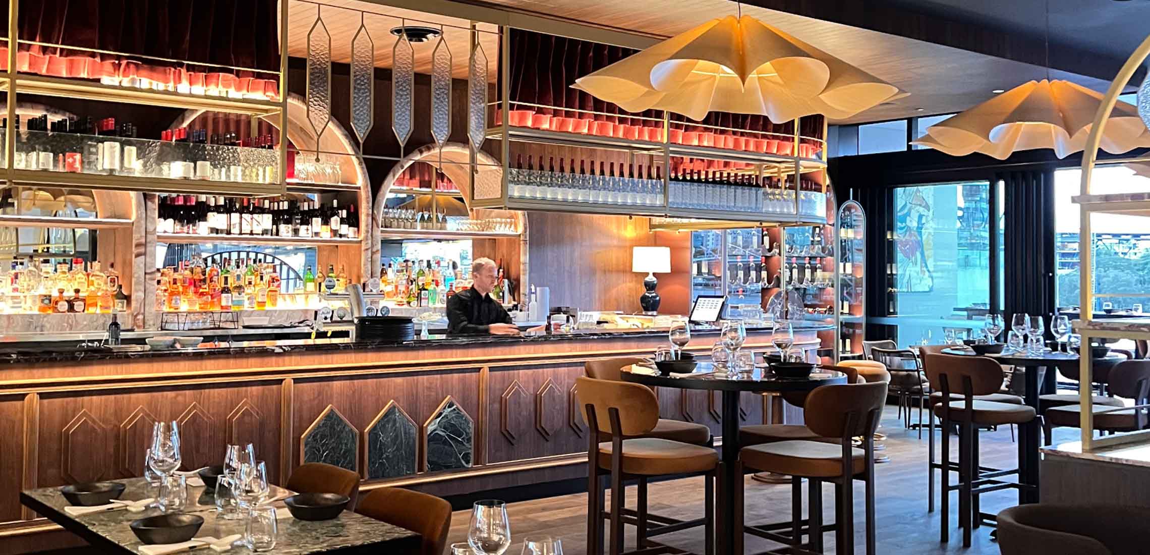 Famous for its uninterrupted river views, Madame Wu now wraps that same luxury into every corner of its interior. Think luxe stonework, layered textures, and lighting so moody you’ll want to linger a little longer. The palette plays with pink marble, rich timber accents, and soft glows that make every table feel like a luxurious experience.