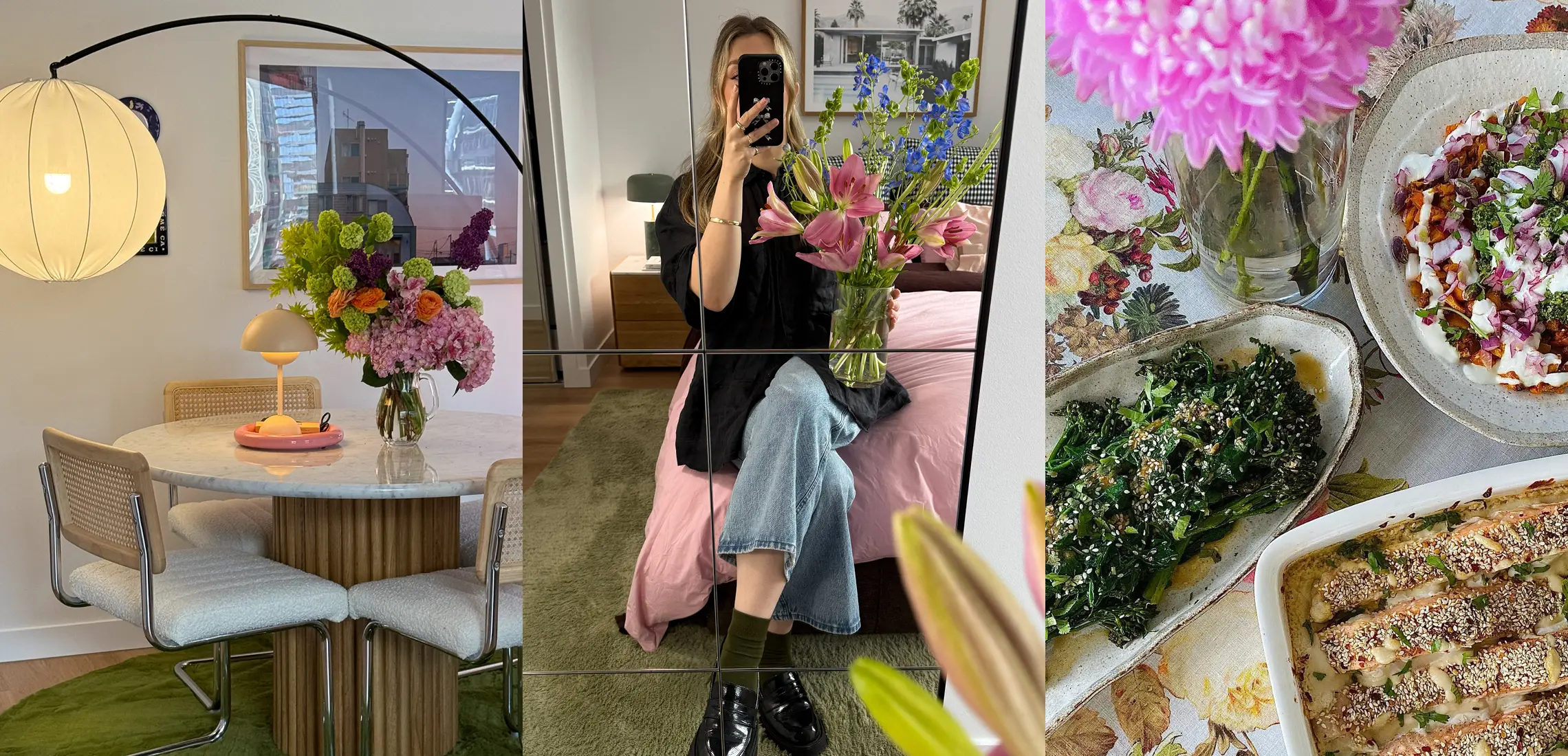 With a style that’s equal parts intentional and tactile, Gabbi nails effortless atmosphere, harnessing vintage aesthetics with a modern lens. She sets the perfect stage for an intimate gathering powered by candlelight and soft background music. From an emerald velvet couch, to colourful tableware, Gabbi’s 70s inspired space was made for at-home hosting.