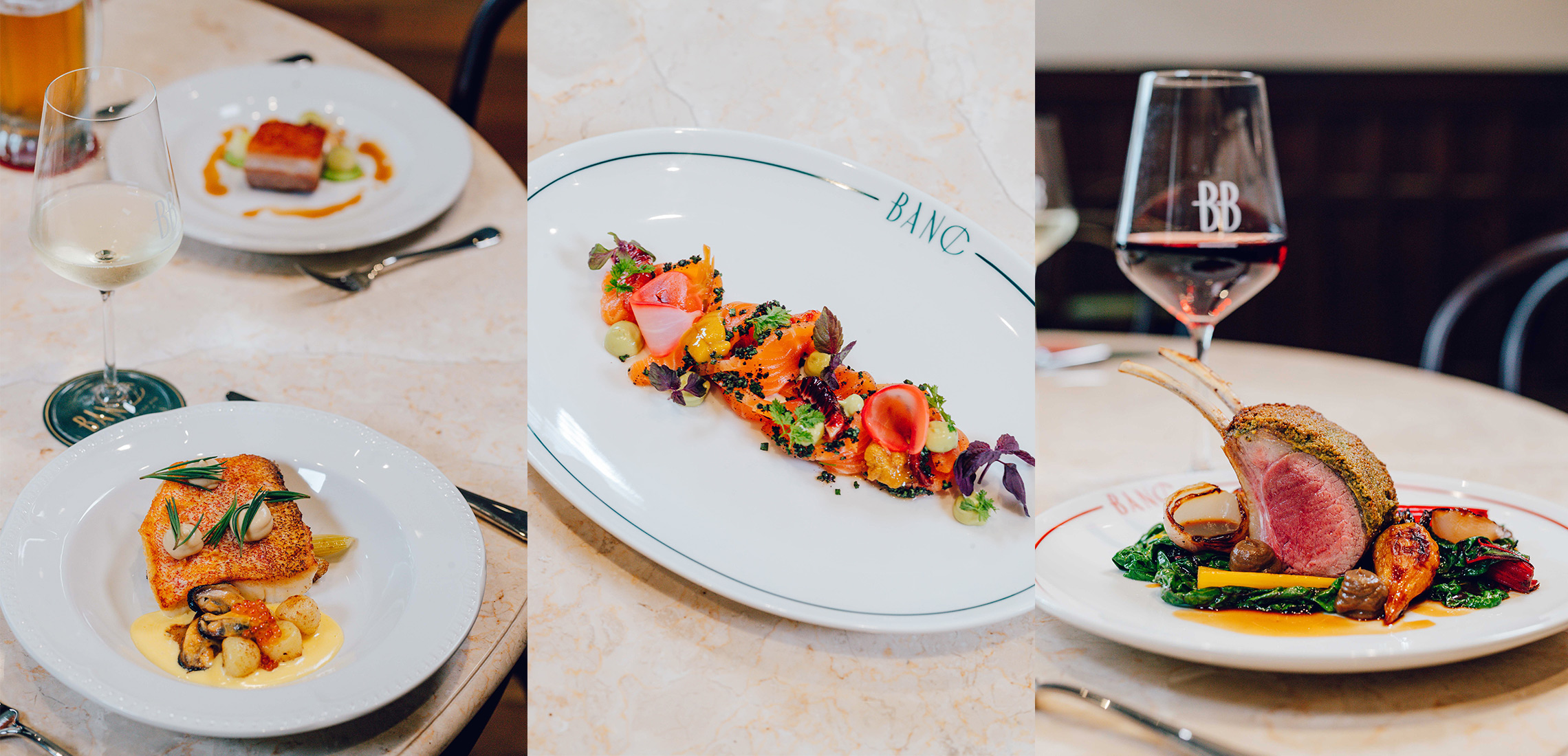 At Banc, you’ll find staple dishes that are adapted to reflect the seasons, such as seafood, Australian beef, and native ingredients. Currently it looks like coral trout with blood lime, fennel and kipfler, or steak frites with either a béarnaise or pepper sauce.
