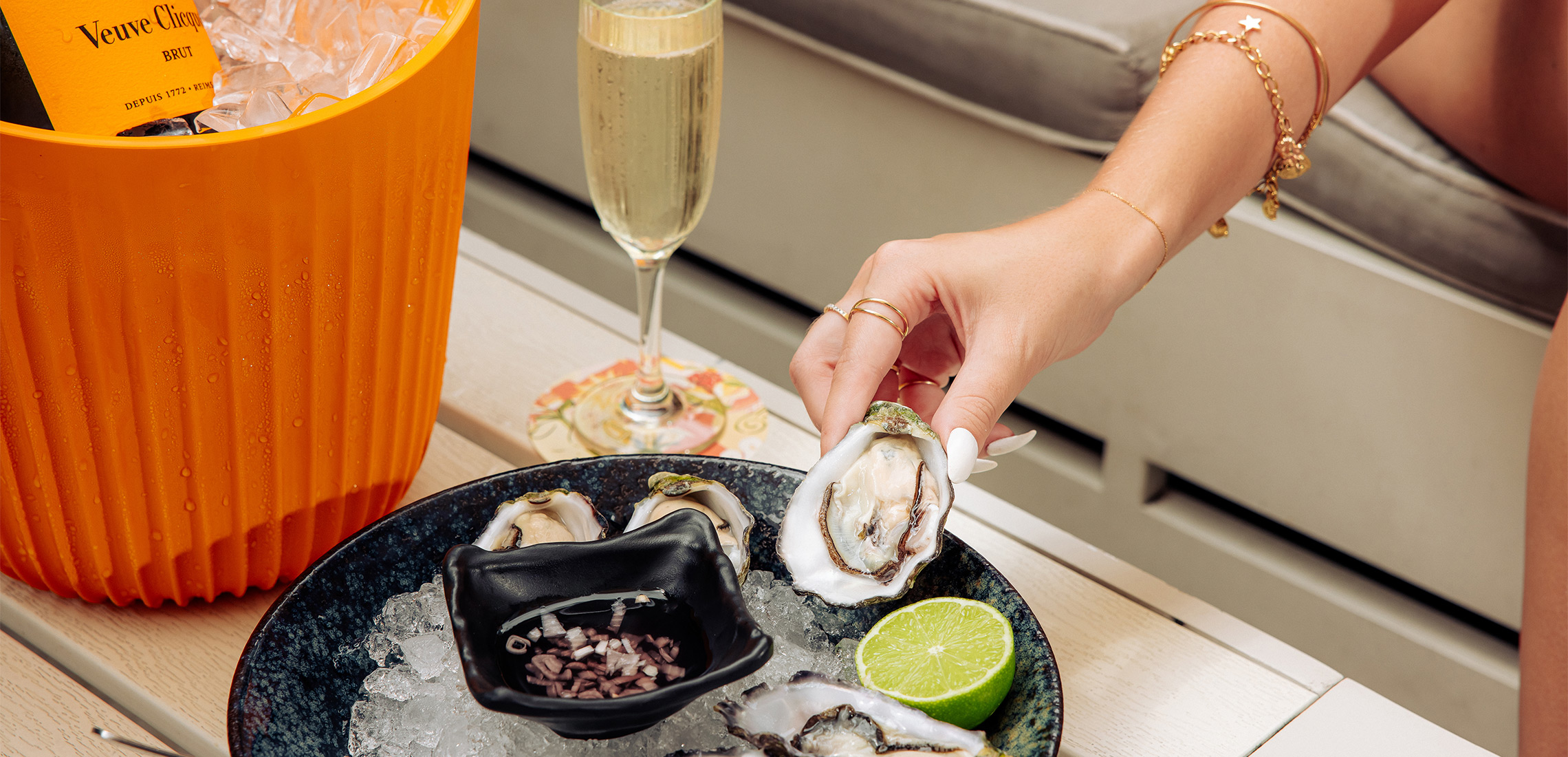 From now until the end of February, Sun Chasers is taking over the WET Deck with live DJs, summer-inspired cocktails, and plenty of ways to kick back – inspired by SABO’s vibrant summer 2025 collection. With a Veuve Clicquot Spritz in one hand and a freshly shucked oyster in the other, heading to this premium destination will put you right in the middle of where fashion and frivolity converge.